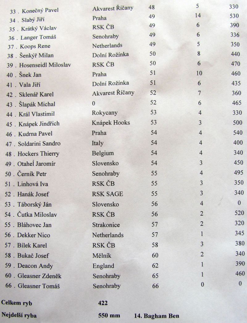 Šedesát šest závodníků z šesti států chytlo něco málo přes čtyři sta ryb.