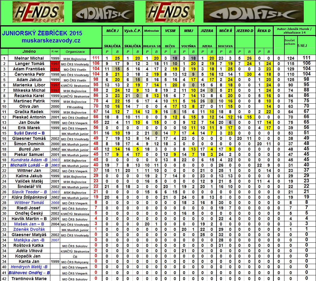 Žebříček doplněný o připomínky z komise mládeže. Zdenek Marek budlux.com.ua/produktsia/keramicheskaya-cherepitsa.html dimtehniki.com.ua/krupnaja-bytovaja-tehnika/holodil-niki?manufacturer=175 http://dm-investment.org/dragocennye_metally/ www.http://karno.ua 42