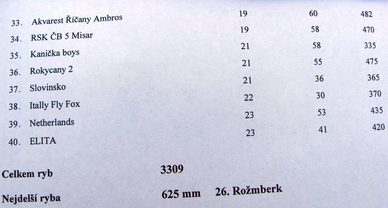 Závod byl v režii potočáků zpestřený o nějakého duháka. Celkem se ulovilo ve čtyřiceti týmech více jak tři tisíce ryb.