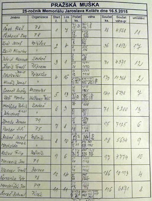 16.května proběhl v Troji pod zoologickou zahradou tradiční a asi jediný současný muškařský závod v Praze. Závod dvojic se chytal na Vltavě 4. Ryby braly. O tom svědčí i výsledek vítězů Romana Hátle a Honzi Šneka, kteří chytli 263 ryb. Bodovala se ale váha, ne množství, a tak úlovek vážil přes 17,5 kg. Neztratili se ani junioři. Dvojce Petr Červenka a Tomík Glaesner obsadili čtvrté místo. Dali 186 ryb o váze přes 10kg.
