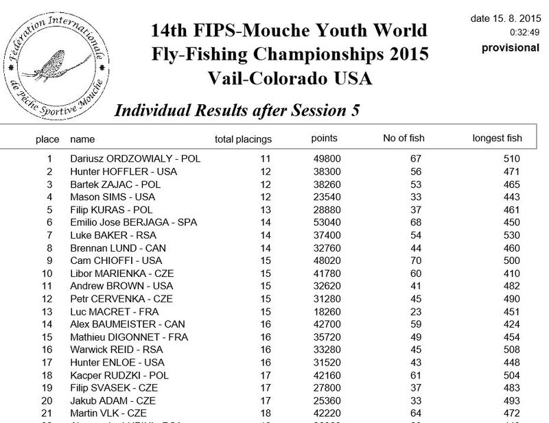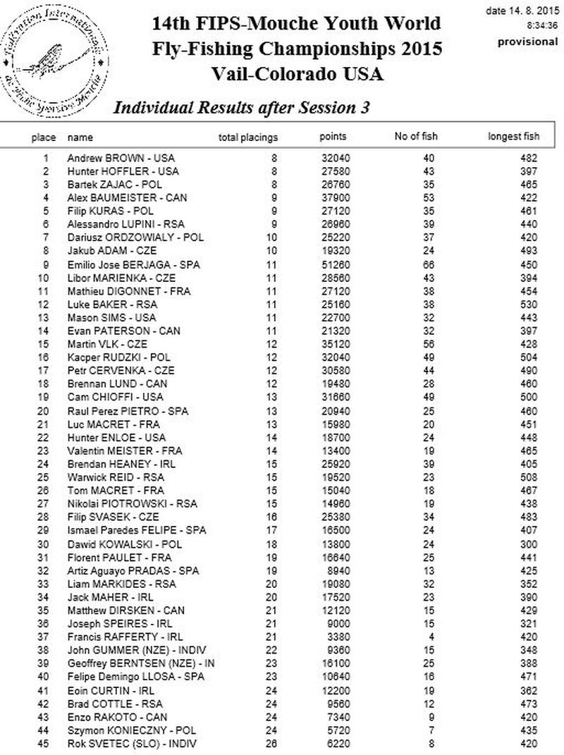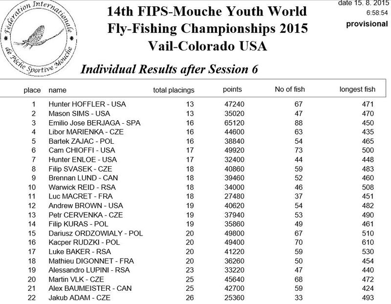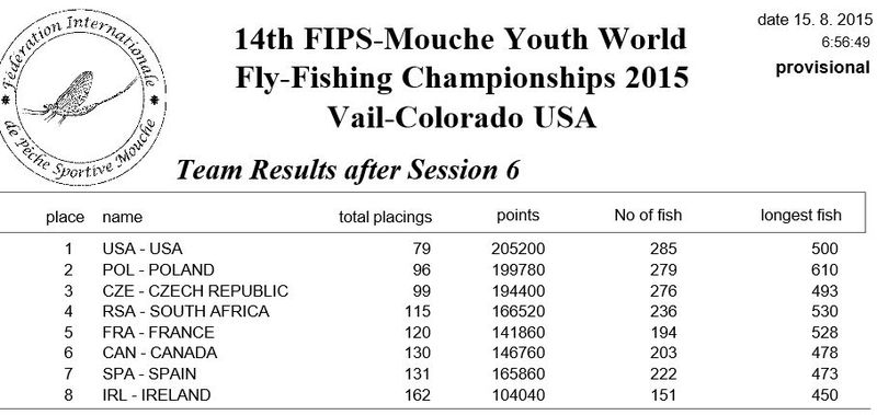 1. kolo – ráno Zorro 28ryb na Sylvanu 3, Kuba Upper Eagle 3, Červ 1 Lower Eagle, Vlčák 4 na Coloradu