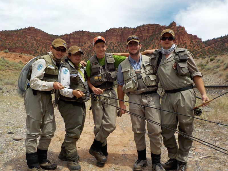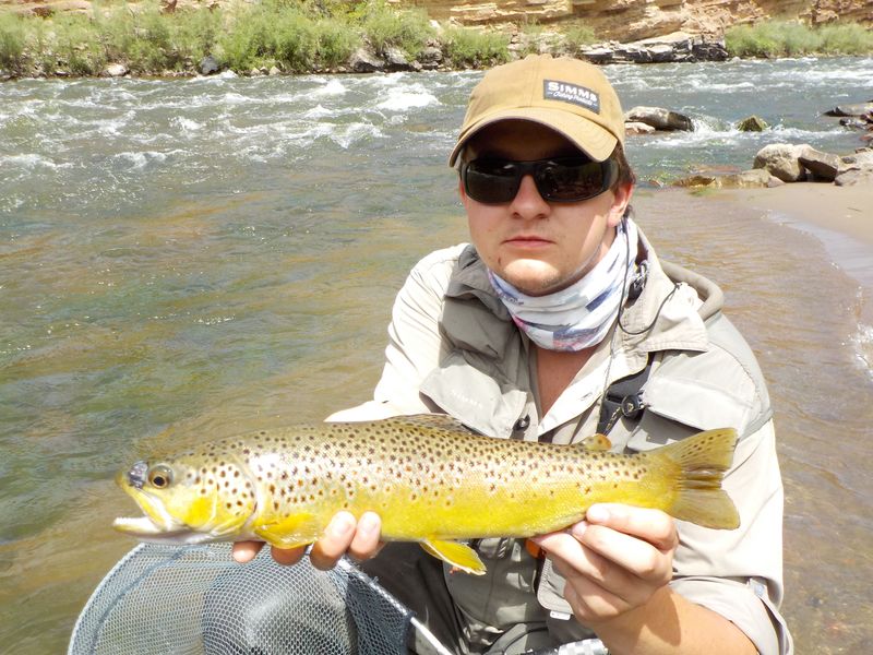 Čtvrtek: Řeka Colorado nádherná řeka v červeném canyonu. Všude děsné sucho takže to vypadá jak někde v Mexiku. Kolem řeky běhají malí syslové. Doufám vypadají tak. Chytili jsme ryby, ale ne tolik jako na řece Eagle. Krásní duháci a potočáci zatím asi největší, myslím. Ryby jsou jen místy a během chytání kolem vás projíždějí lodě s muškaři co projíždějí ze soukromých úseků kde se smí chytat jen z lodě protože dno řeky je soukromé. Skoro všichni z těch lodí chytají s malou bublinou a pod tím nymfa.
