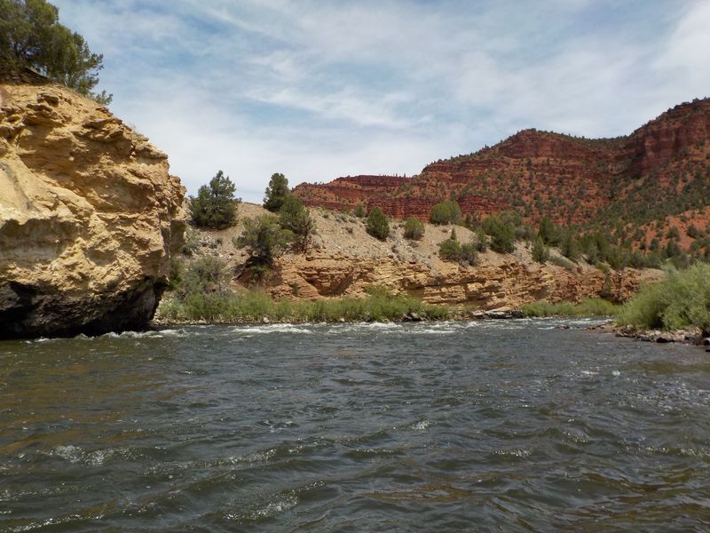 Na řece Colorado není tolik ryb a jsou jen místy. Zato jsou krásné. Nejvíce ryb jsme si zachytali na řece Eagle. Tam to bylo super. Potočáci, duháci a cuttrouti. Cuttrouti jsem nejbojovnější. Colorado má nádherné údolí s červenými skalami. Eagle je menší a teče mezi stromy kdežto Colorado je otevřené. Je tu také sucho jako prase. Řeka Colorado je zhruba o 50 cm níže než vloni na America Cupu což mi říkal Polský kapitán