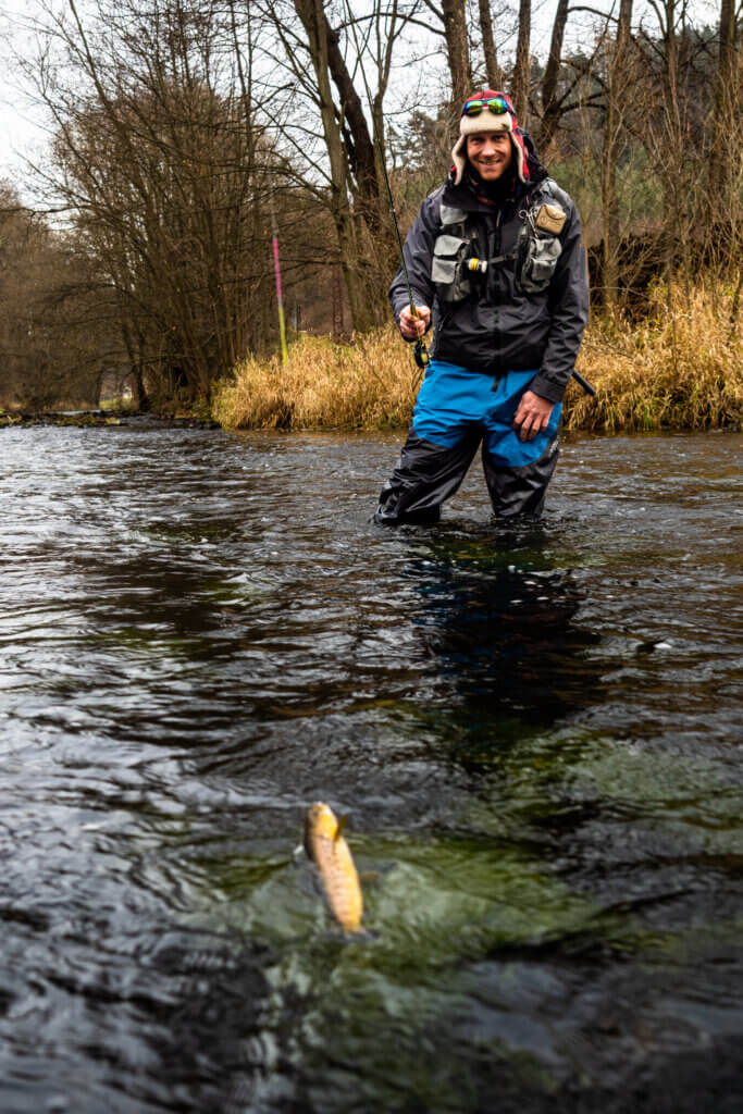 S Fíďákem se známe už nějaký pátek. Díky bráchovi se protly naše cesty a spolupracujeme spolu už téměř 10 let. O rybách přemýšlí komplexně. Není zbrklý plašan, který by běhal kolem vody a nahodile “něco” zkoušel. Prutohodiny z let minulých mu daly zkušenosti, ze kterých čerpá. Jak říká, každá ryba má svoje roční období. Proto chytá různé styly. I muškařina u něj má své místo. V poslední době lehce “sešel z cesty”, protože pár let jej bavilo spíš kolo. A taky spolupráce s velkou rybářskou firmou jeho nadšení zbrzdila. Ale to už je snad minulostí a zase jej můžete aspoň párkrát do roka potkat u vody, ať už s feedrem, mušákem či 40 g vláčákem.