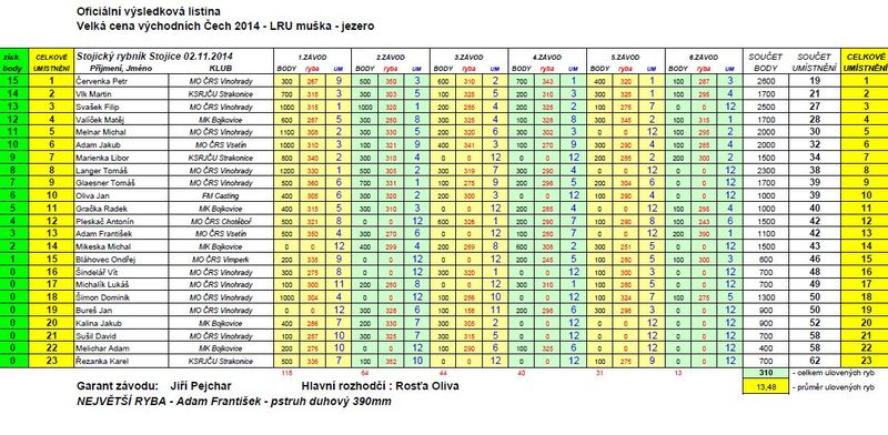 Největší ryba: Franta Adam – pstruh duhový 390mm