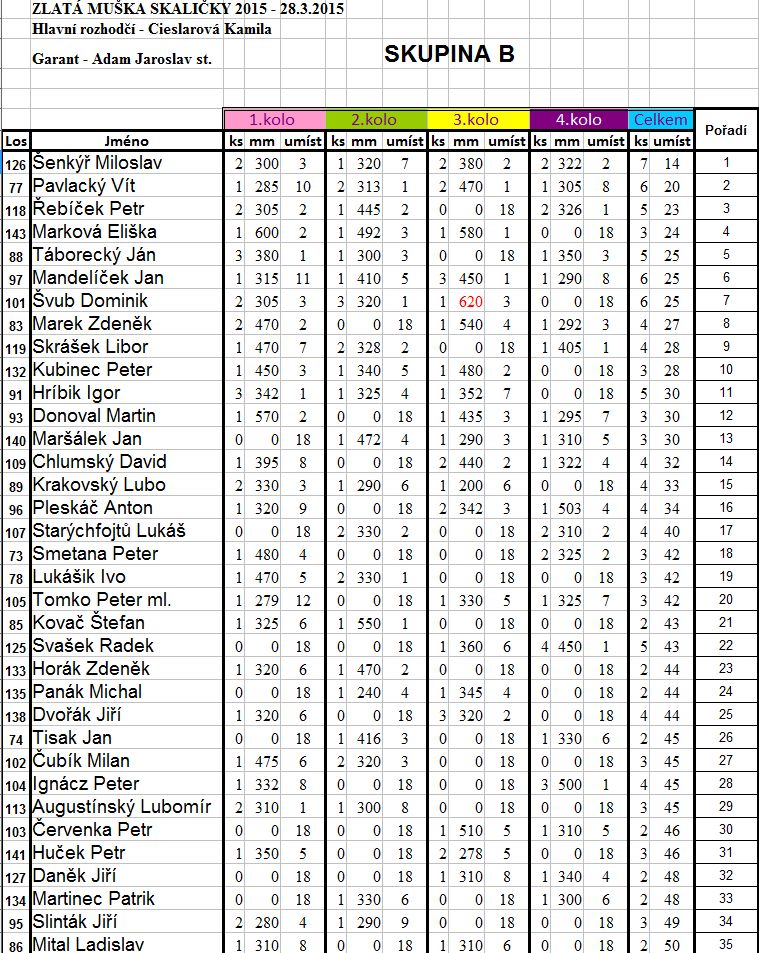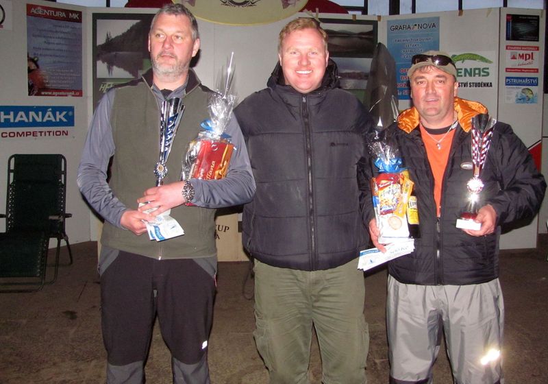 Vítězové Zlaté mušky 2015. Skupinu A vyhrál Vladimír Škoda, skupinu B vyhrál Milan Šenkýř.