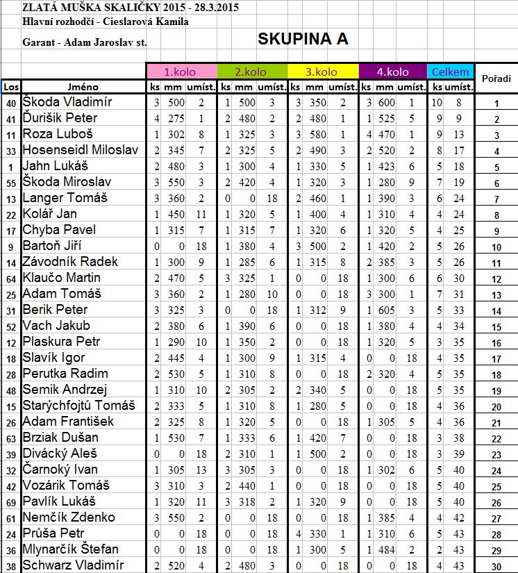 Celkové opravené výsledky po skupinách